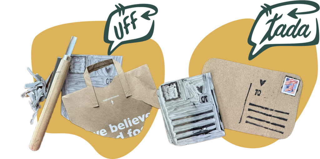 SUPPLIES: Carving rubber, carving tools, stamp, scrap paper, scissors