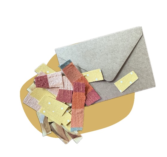 Each set comes with approximately 25 pieces of scrap fabric tape in either warm or cool tones. Picture is example only, patterns and colors will vary.